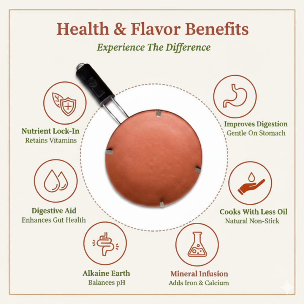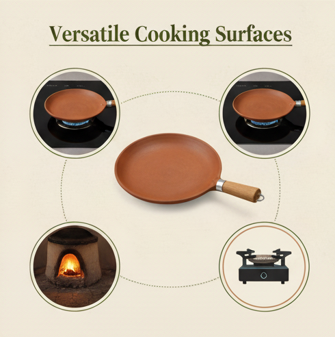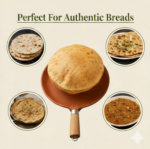 Experience authentic flavours with our artisan-handcrafted clay tawa, designed for healthier, nutrient-rich cooking.