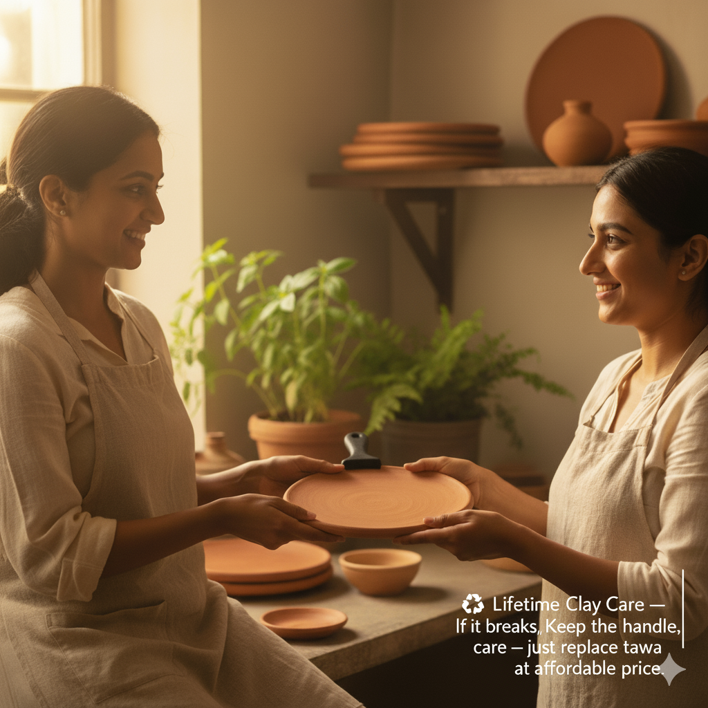 That’s why Khaapree offers Lifetime Clay Care: if your tawa ever cracks or wears out, we’ll provide an easy, affordable renewal option instead of making you buy a new one.